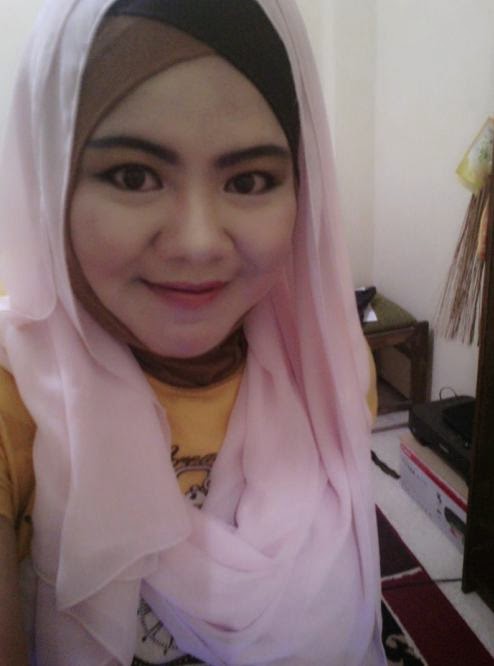 pakai paling luar yaitu warna ungu. Oh iya untuk memberi bukti bahwa model yang memperagakan gaya hijab tersebut memilik pipi tembem seperti gambar di bawah ini
